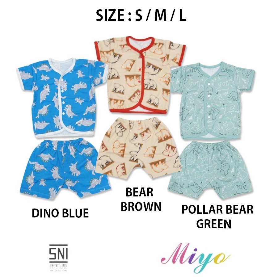 Detail Baju Bayi Setelan Lengan Pendek Kancing Depan Piyama Anak Newborn/SML Miyo Motif Dino Grey (1 Stel)