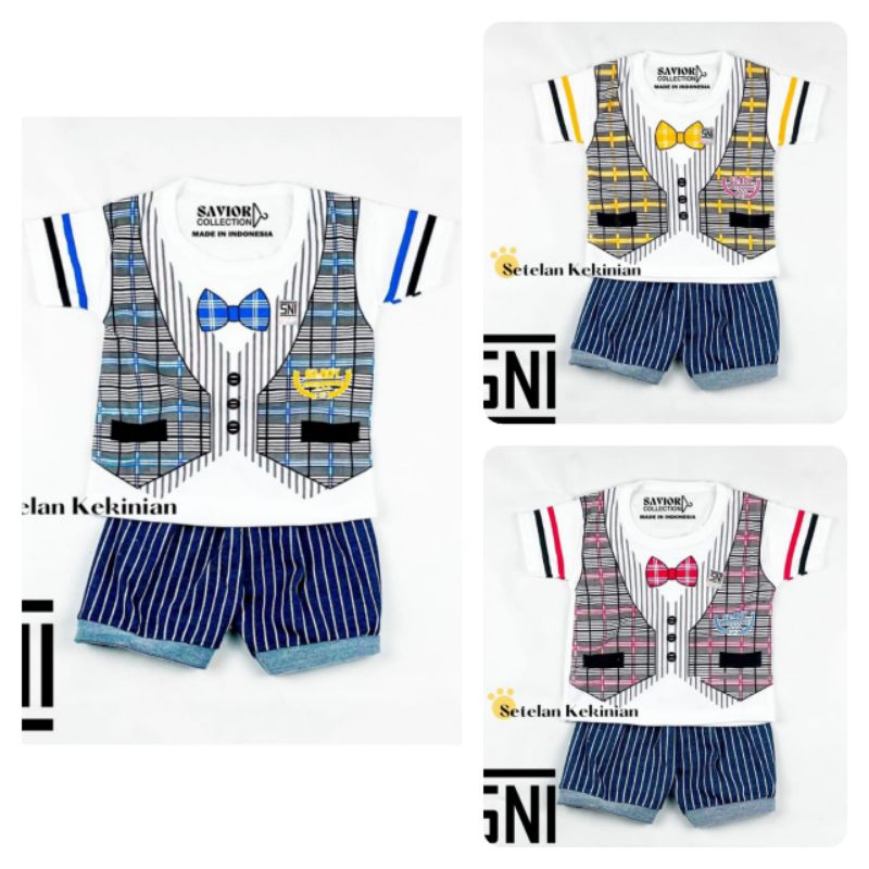 Baju Bayi Setelan Oblong Anak Laki Laki 3 - 18 bulan SNI / setelan baju bayi harian anak cowok bayi rompi tuxedo rompi dasi gajah MOM & ME