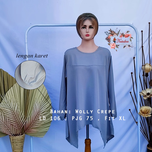 Bahan : Wolly Crepe Ukuran : All Size Fit To XL Lingkar Dada +/- 106 cm Panjang Baju +/- 75 cm