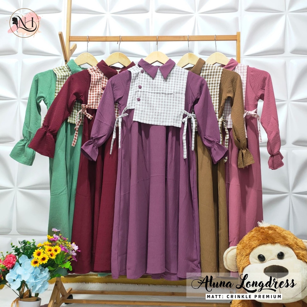 Baju Gamis Anak Aluna Longdress Crinkle Airflow Usia 3-12 Tahun Baju Anak Nayla Hija'b