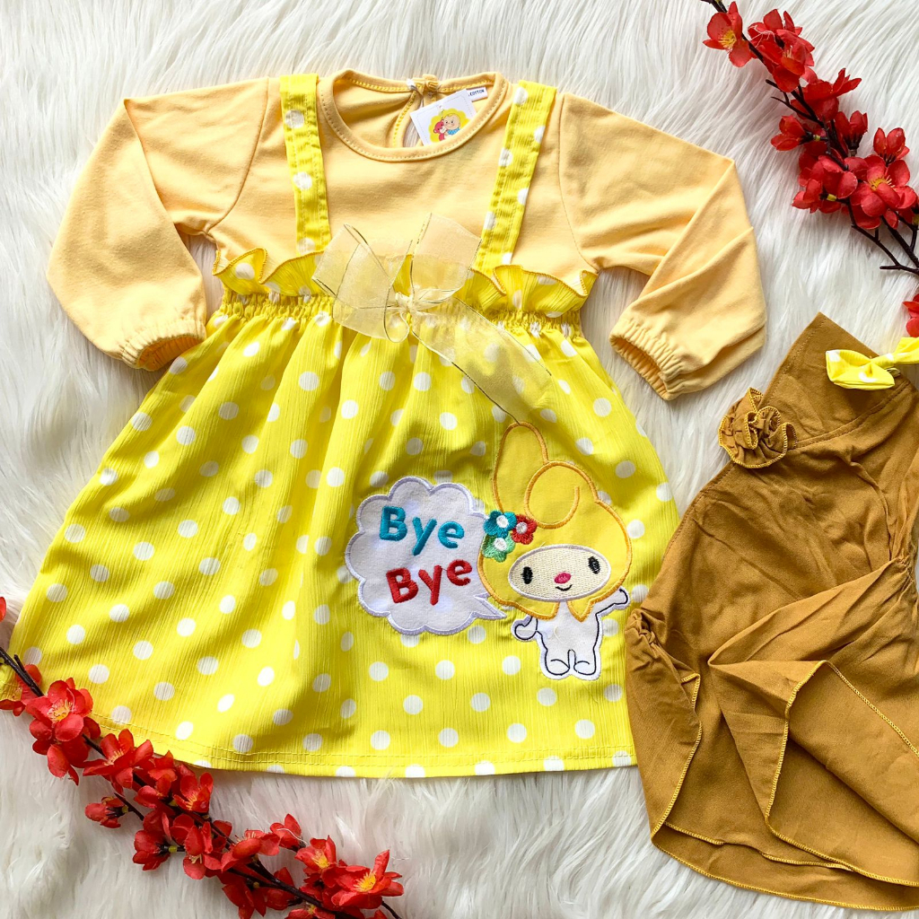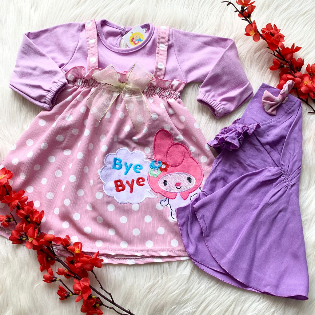 Baju gamis anak perempuan free kerudung hijab muslimah cantik lucu fashion bayi cewek murah -bye