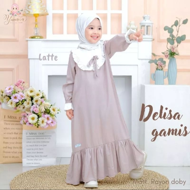 Baju Gamis anak perempuan murah terbaik 2023 : koleksi Dress Delisa gamis muslim kids untuk umur 6-8 tahun