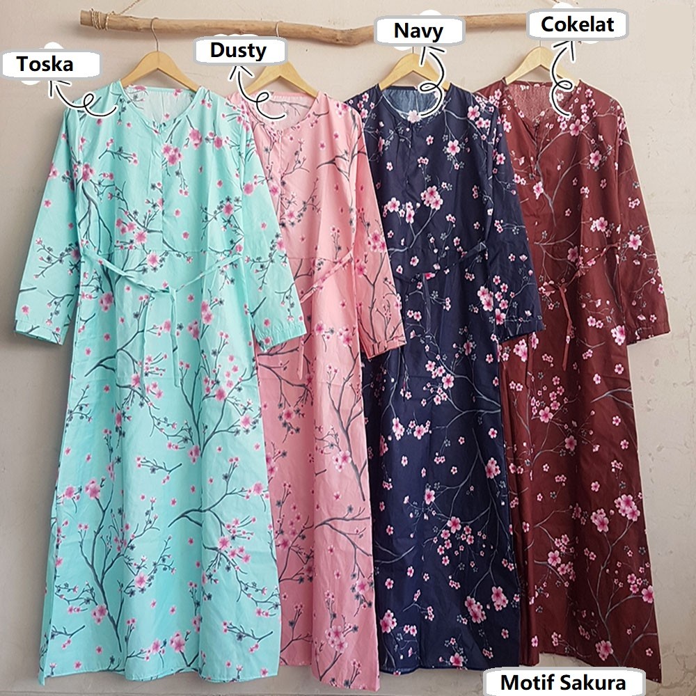 Detail baju gamis Katun Jepang Motif Rasti, Bunga, Etnik, Retro, Polkadot, Vintage best seller