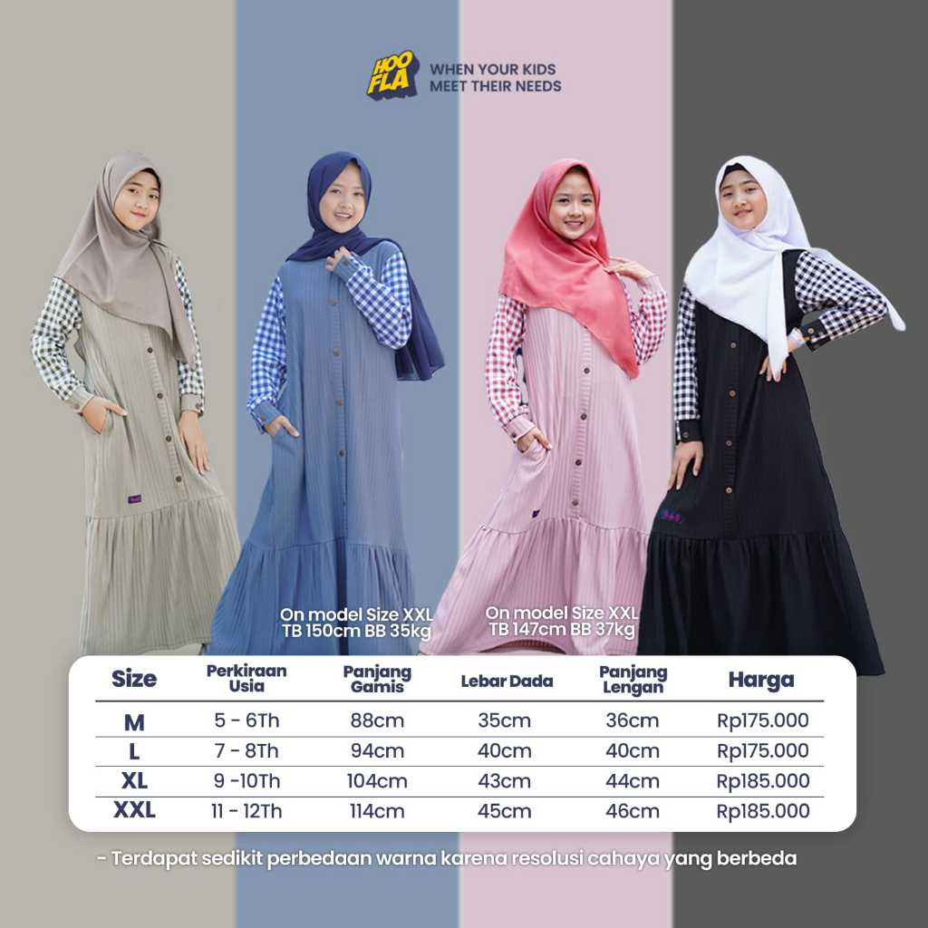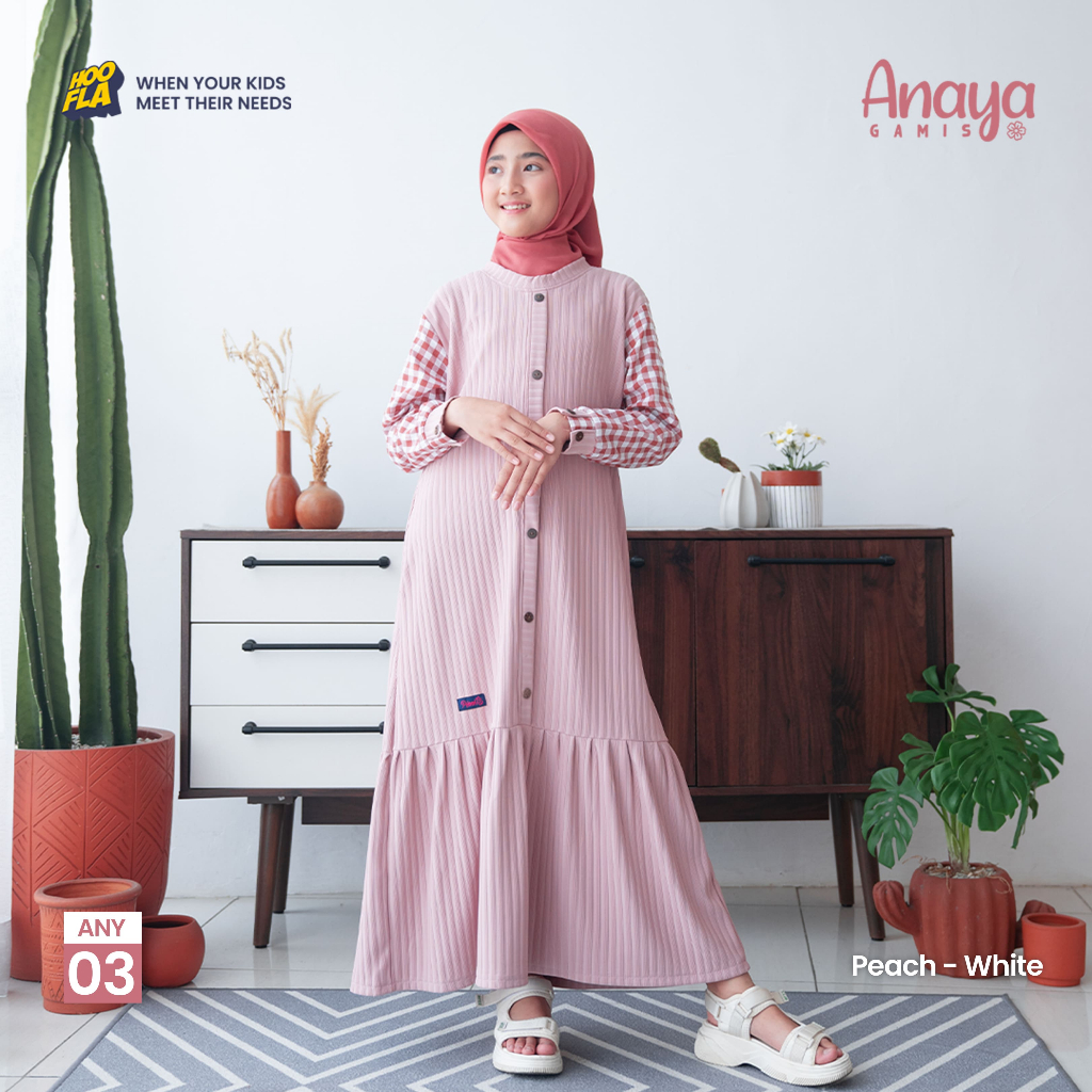 Dengan bahan yang adem serta desain yang fashionable, Anaya Gamis siap menemani anak untuk beraktivitas dengan aurat yang tertutup.