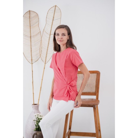 Simplicity is the keynote of all true elegance Baju menyusui ini sangat manis dengan aksen pita pada bagian pingang Materialnya juga katun linen yang adem Akses menyusuinya praktis dan gampang khas Baju Island yang tinggal tarik di kanan kiri dada tanpa kancing, tanpa ritsleting