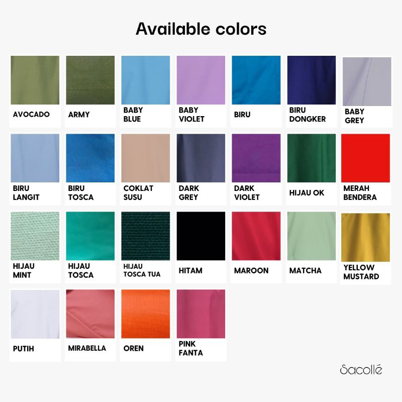 Ready Warna saat ini: Baby blue Dark Grey Maroon Biru Dongker Hijau Hitam Baby Violet Ungu Tua Yellow Mustard Baby Grey Biru Langit Krem Hijau Tosca Putih