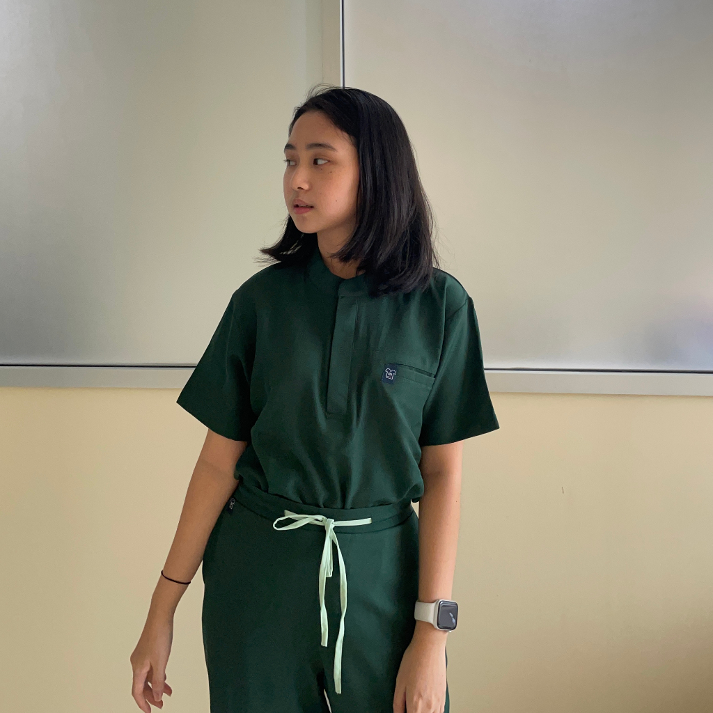Kesehatan > Obat-obatan & Alat Kesehatan > Obat-obatan & Alat Kesehatan Lainnya > Baju Jaga MANDARIN LS - DARK GREEN Scrubs Theatre Blues Empirical Lengan Panjang