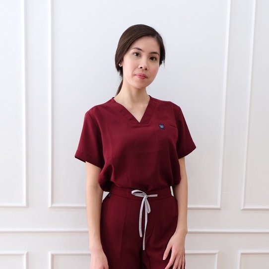 Kesehatan > Obat-obatan & Alat Kesehatan > Obat-obatan & Alat Kesehatan Lainnya > Baju Jaga V NECK SS - MAROON Scrubs Theatre Blues First Line Lengan Pendek