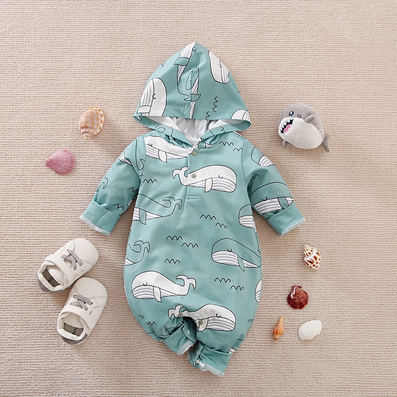 Detail Baju Jumper Kupluk bayi lucu Motif PAUS BIRU usia 0-2 tahun bahan satin Import Premium