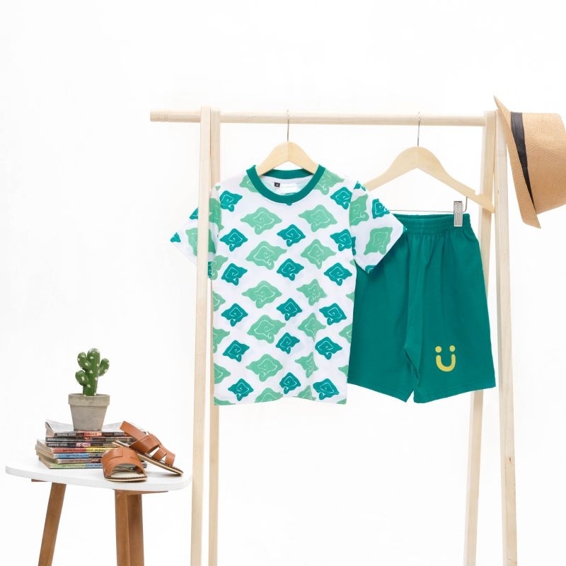 Baju kaos menggunakan bahan Premium Cotton Combed 30s dan Celana menggunakan bahan Premium Cotton Combed 24s, dengan spesifikasi bahan yang halus dan adem buat anak sekaligus nyaman untuk dikenakan saat bermain.