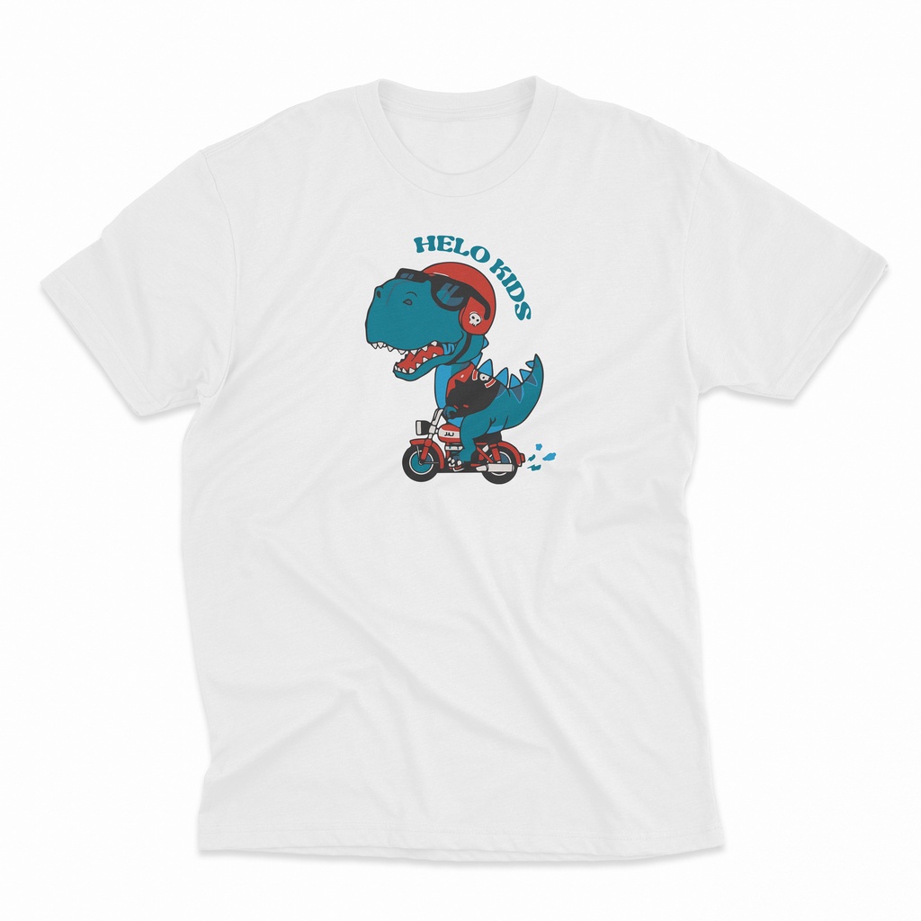 Detail Baju Kaos Anak Laki-Laki Permpuan Warna Putih Motif Kartun Dino Kucing Hiu Game Beruang Mickiy Motor 1- 10 Tahun