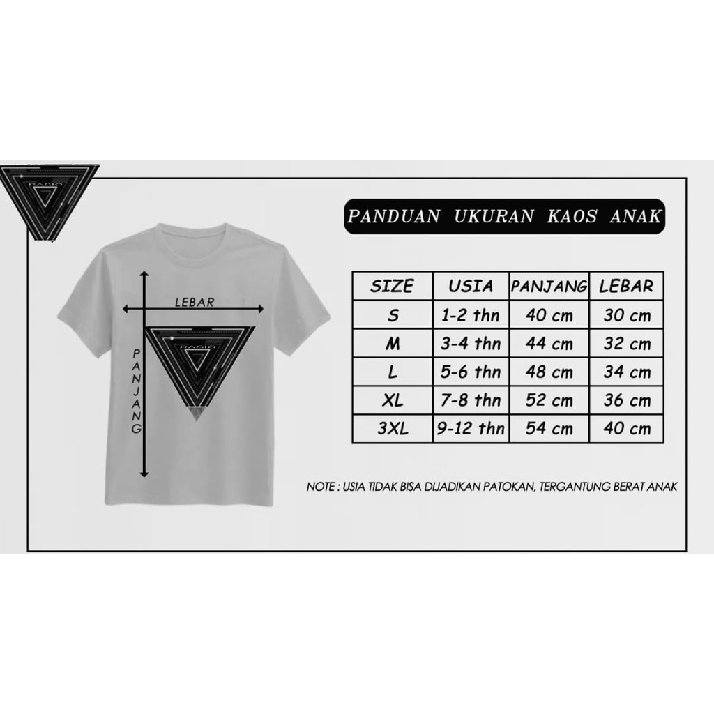 NOTE :HARAP MENGUKUR BADAN ANAK SEBELUM ORDER USIA TIDAK MENJADI PATOKAN.