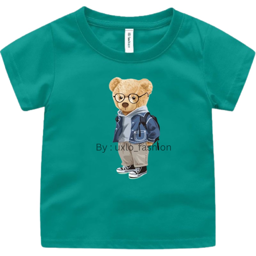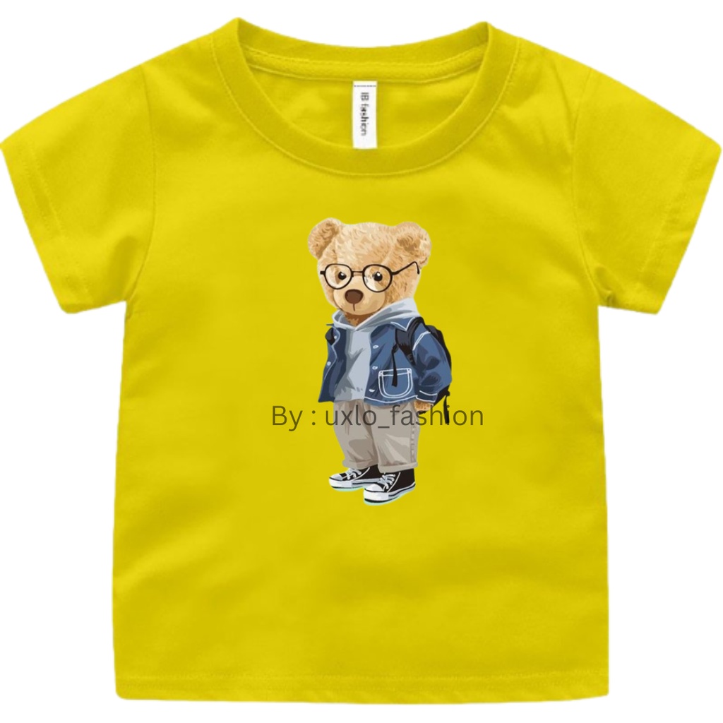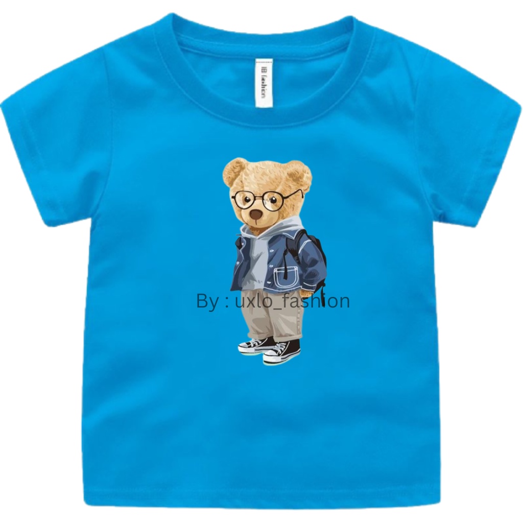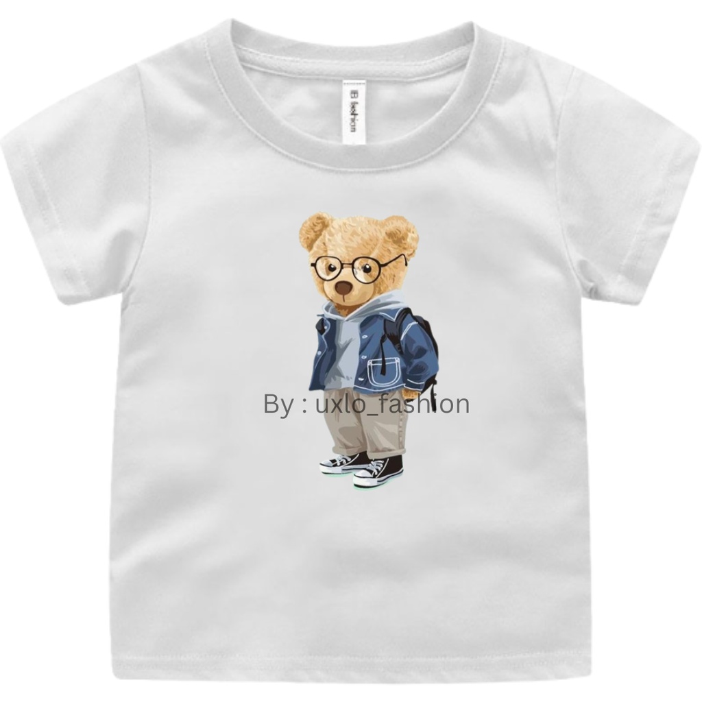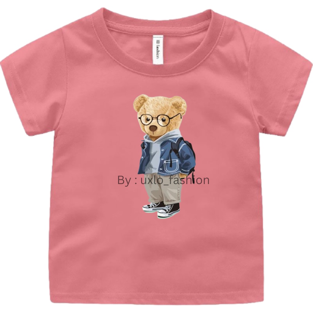 Baju kaos anak perempuan dan laki murah motif bear beruang kekinian sablon digital umur 2-9 tahun uxlo fashion