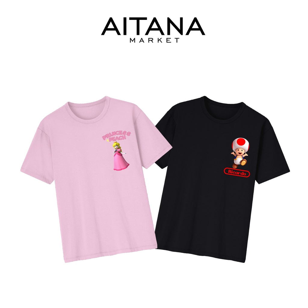 Baju Kaos Custom Nama Mario & Princess Peach Size Bayi Anak Remaja Dewasa Bahan Katun Combed 30s Premium