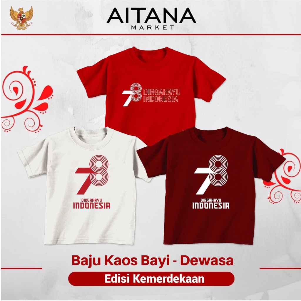 Baju Kaos Kemerdekaan Size Bayi Sampai Dewasa Seri 78 Dirgahayu Bahan Katun Combed 30s