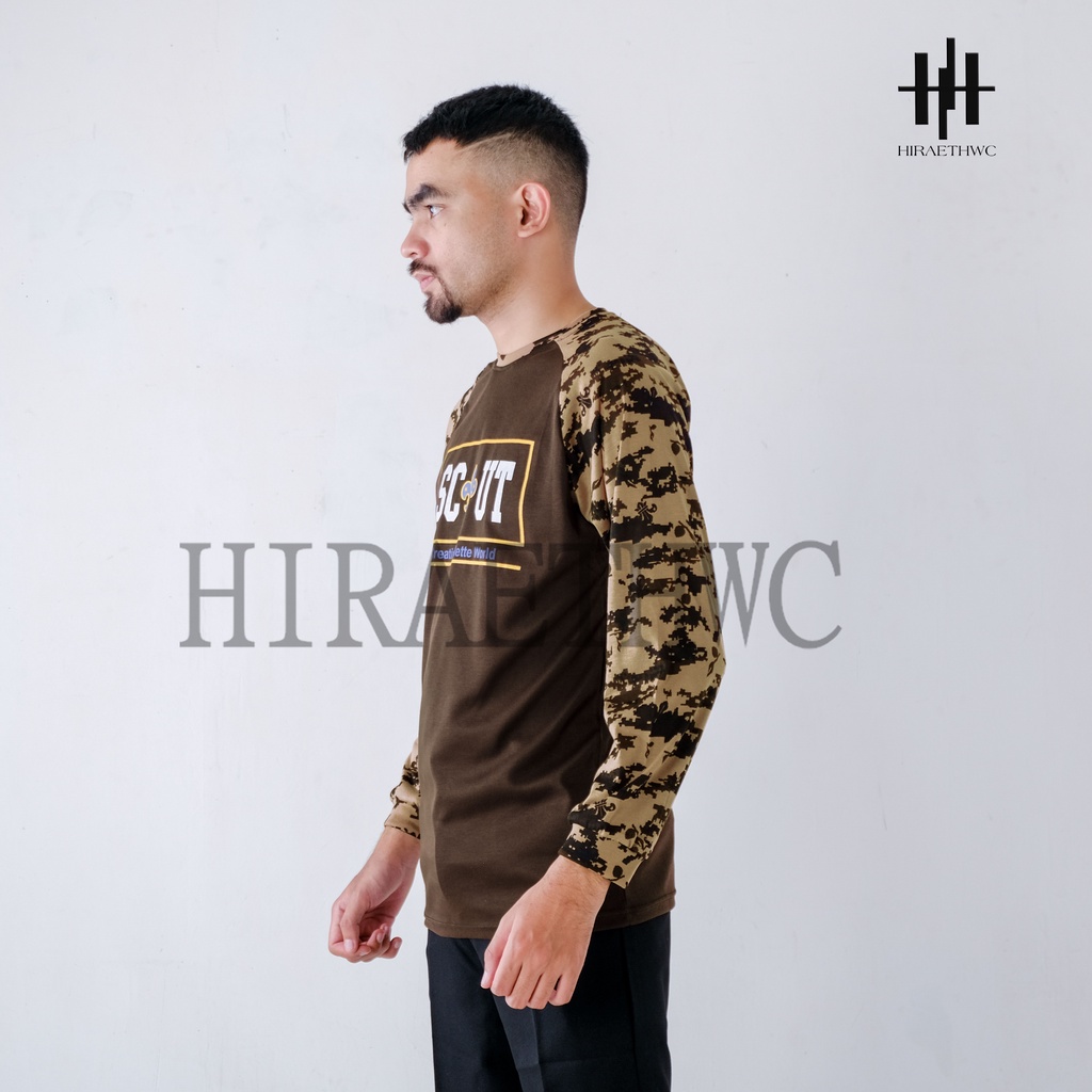 Detail BAJU KAOS LORENG PRAMUKA KATUN SCOUT RAGLAN SABLON BDU LAPANGAN PDL LENGAN PANJANG MURAH