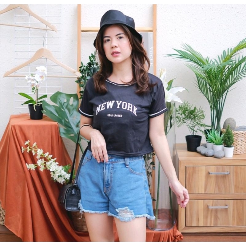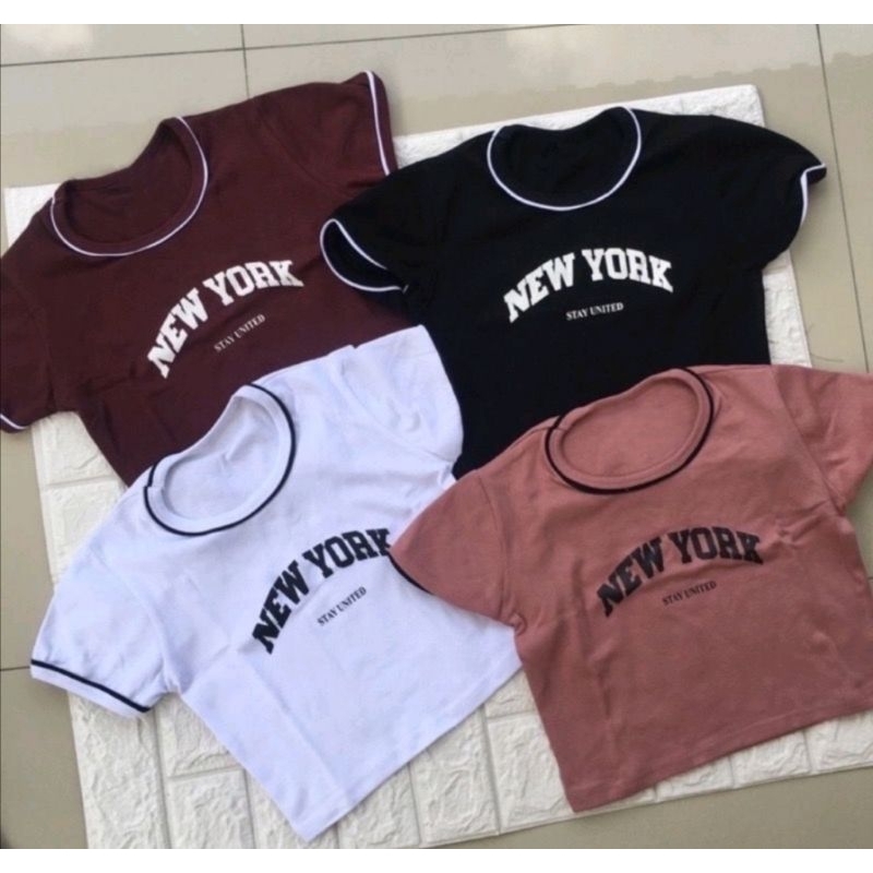 Detail Baju Kaos NewYork List Crop AllSize Fit To L