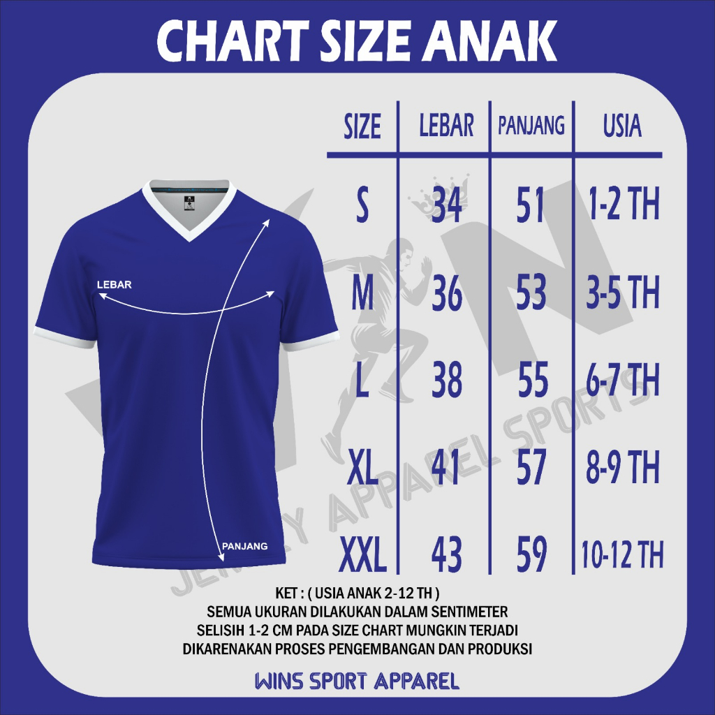 Spesifikasi Bahan : Dri-Fit Polyester (Pique /Jarum) _________ UKURAN / SIZE CHART Anak Usia : Lebar x Panjang 1-2 Thn = S 34 x 51 3-5 Thn = M 36 x 53 6-7 Thn = L 38 x 55 8-9 Thn = XL 41 x 57 10-12 Thn = XXL 43 x 59