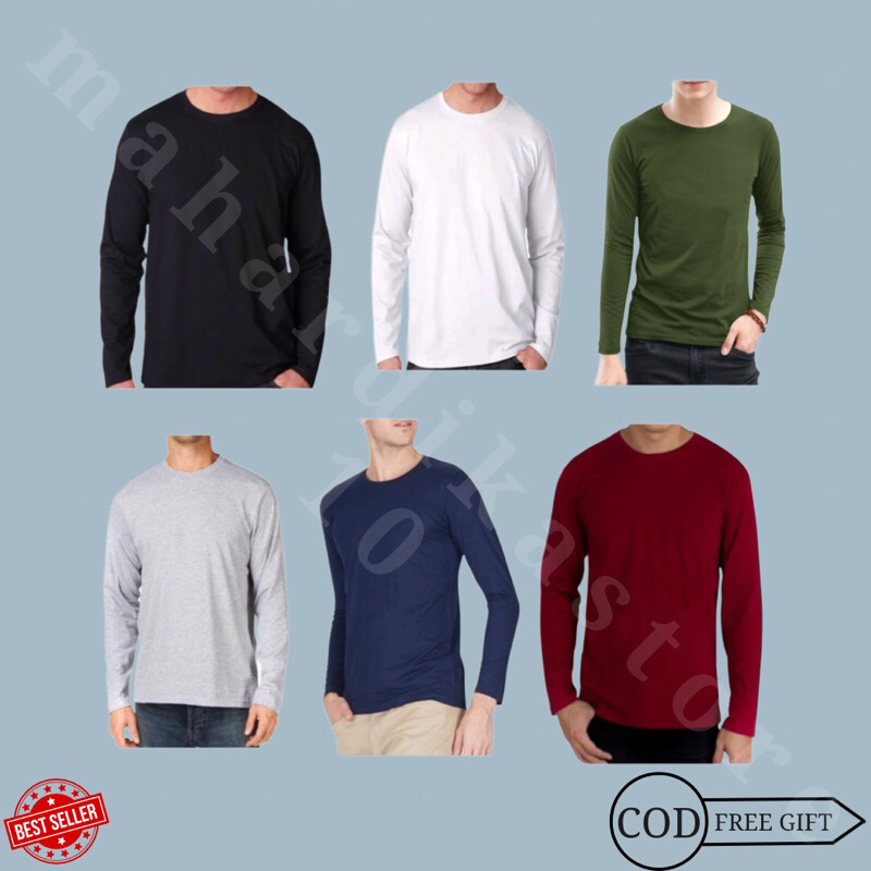 Detail Baju kaos polos lengan panjang pria dan wanita bahan katun size m , l ,dan xl free stiker dan masker duckbill