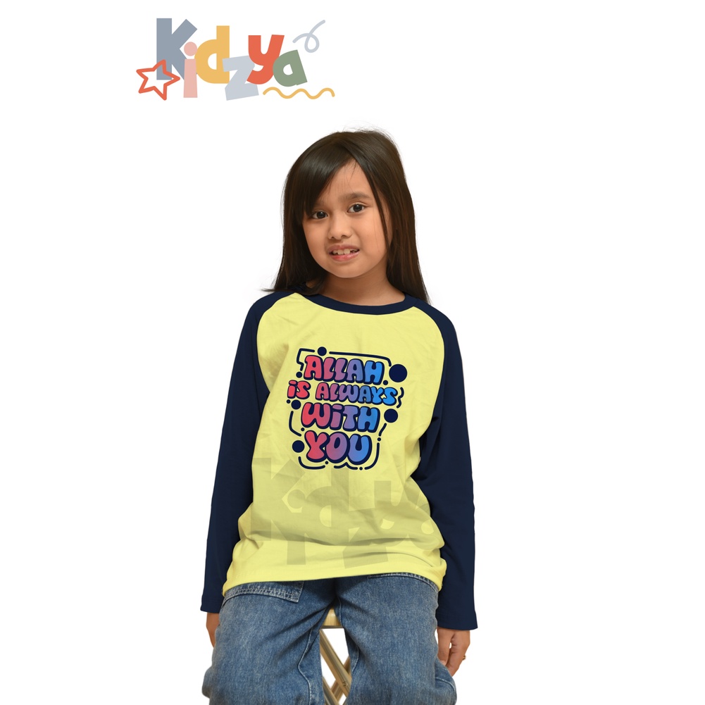 Detail Baju Kaos Raglan Anak Muslim Panjang UNISEX - Allah is Always with You - KIDZYA