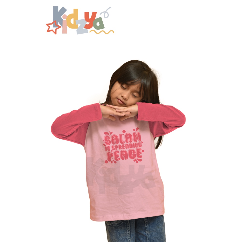 Detail Baju Kaos Raglan Anak Muslim Panjang UNISEX - Salam is Spreading Peace - KIDZYA