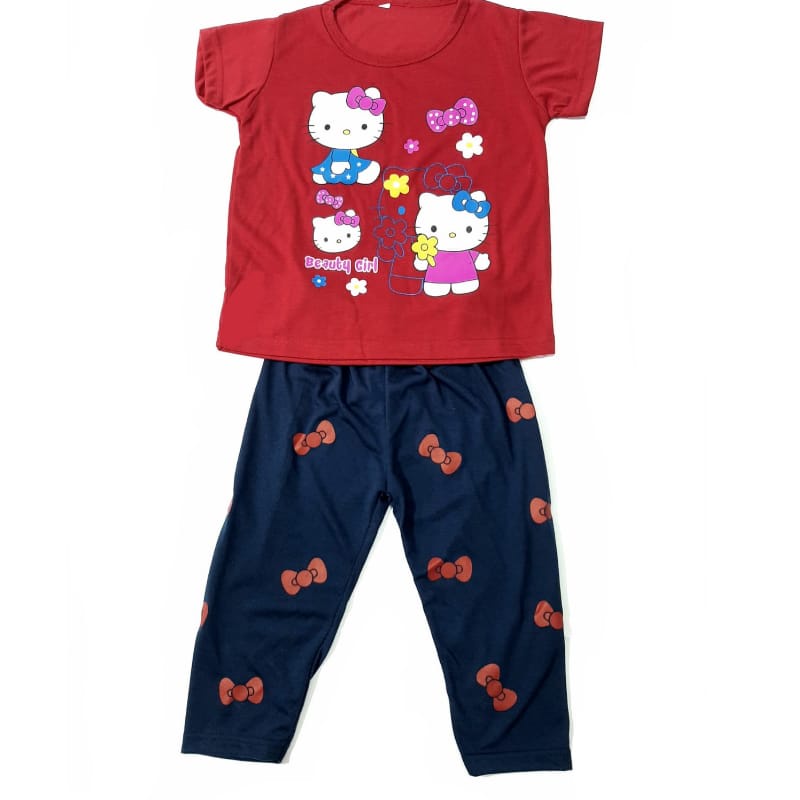 baju kaos setelan anak 1-10 tahun CP perempuan lengan pendek celana panjang kaos cewek baju tidur gambar kitty pita