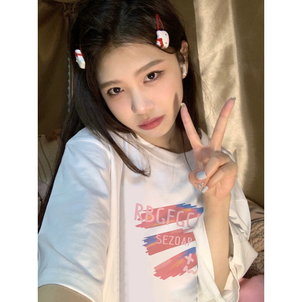 Detail baju kaus oversize wanita lengan pendek korean style letter motif printed t-shirt import kekinian kaos puith