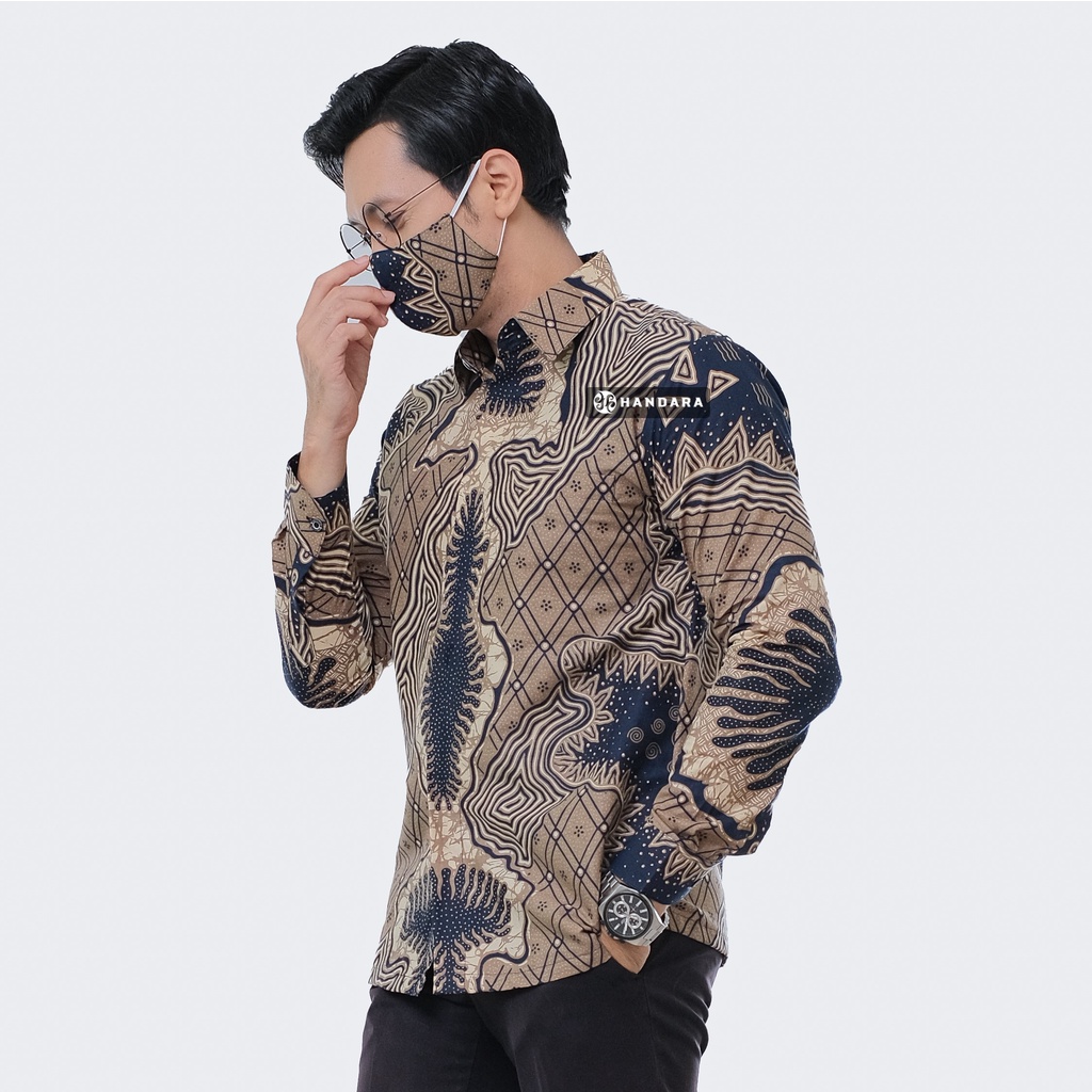 Baju Kemeja Batik Pria Lengan Panjang Slim Fit Premium Modern Full Furing Katun Halus Original Handara Motif Sumitro Krem Biru Navy HB-294
