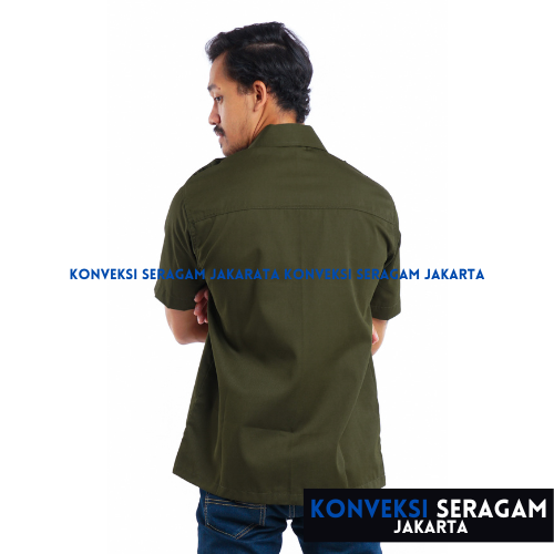 Baju Kemeja PDL Lengan Pendek Seragam Kerja Dinas Lapangan Outdoor Outdor Gunung Komunitas Custom Bordir Hijau Army Pria Wanita