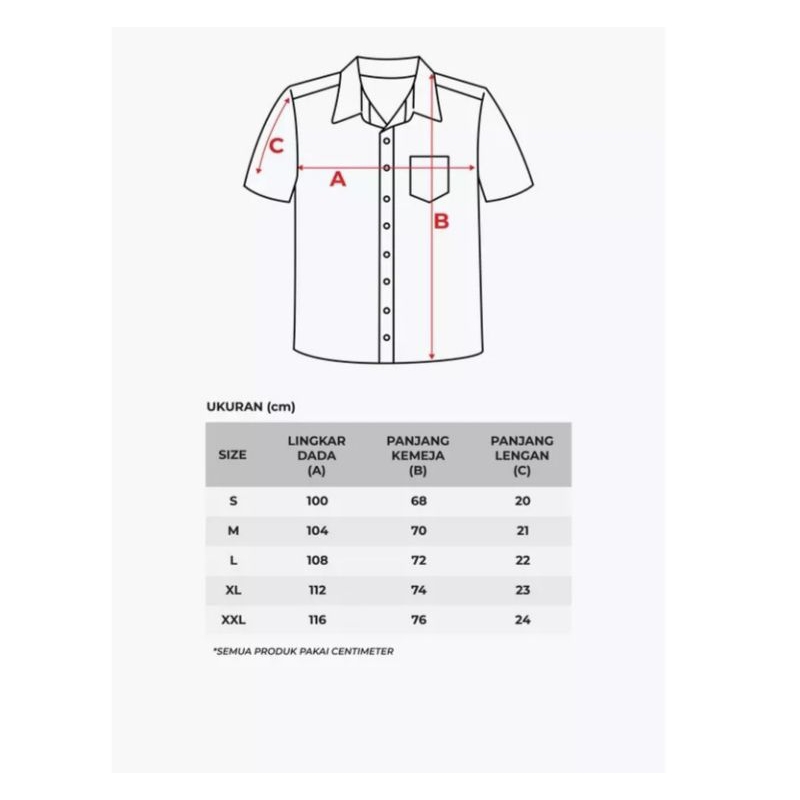 "HARAP DI PERHATIKAN SIZE DETAIL KEMEJA AGAR TIDAK TERJADI KESALAHAN SIZE (TOLERANSI SIZE +- 1 SAMPAI 2 CM)"