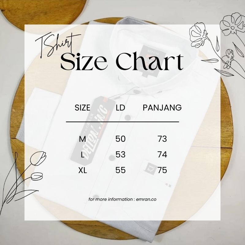 size chart: M: Panjang 73cm x lebar 50cm L: Panjang 74cm x lebar 53cm XL: Panjang 75cm x lebar 55cm
