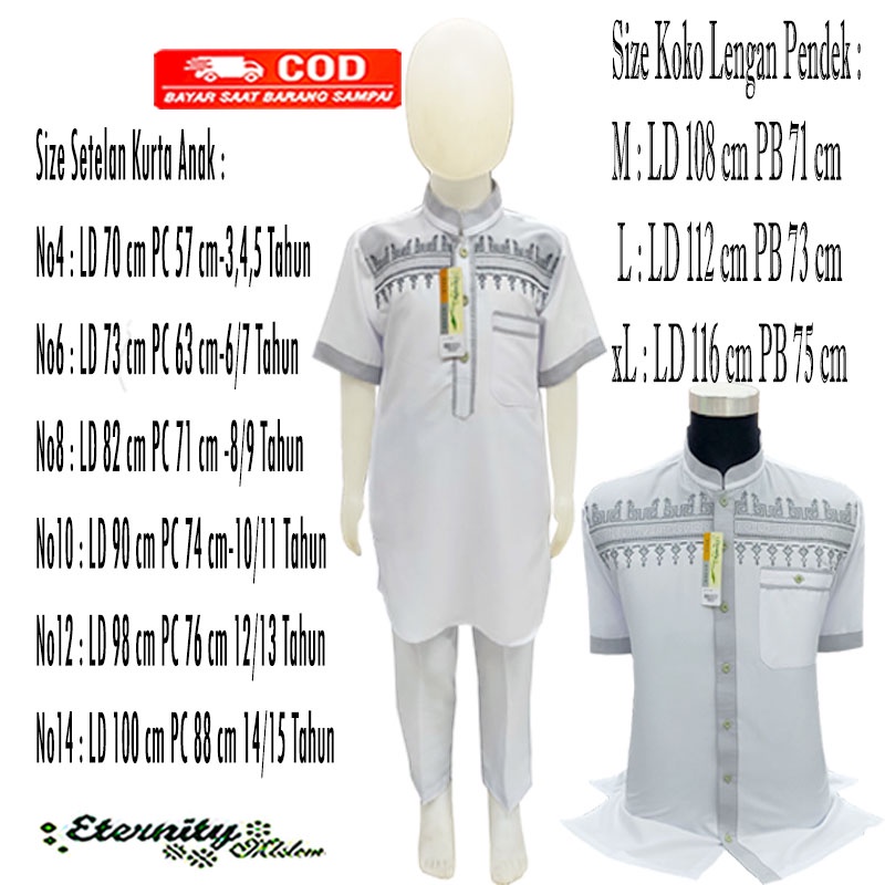 Merk : eternity.moslem Model : kombinasi bordir,Lengan pendek Bahan : katun Mikro Super Size Ayah : M L xL Size Setelan Anak : No4- No6- No8- No10- No12 No14 Warna : sesuai yang ada di foto