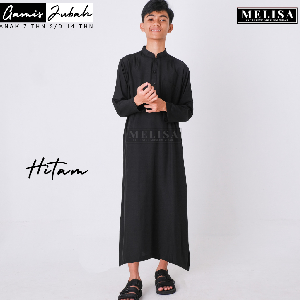 baju koko jubah anak buat anak umur 7 8 9 10 11 12 13 14 tahun warna hitam dan putih jubah anak gamis anak Koko Muslim Lengan Panjang Remaja Anak Laki Laki Ukuran M L XL