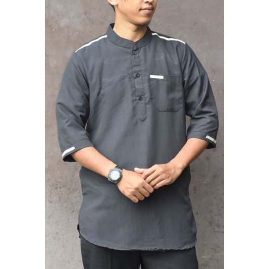 Baju Koko Kurta Dewasa Material Katun Micro Dengan Variasi Lis Pundak Tangan dan Kantong