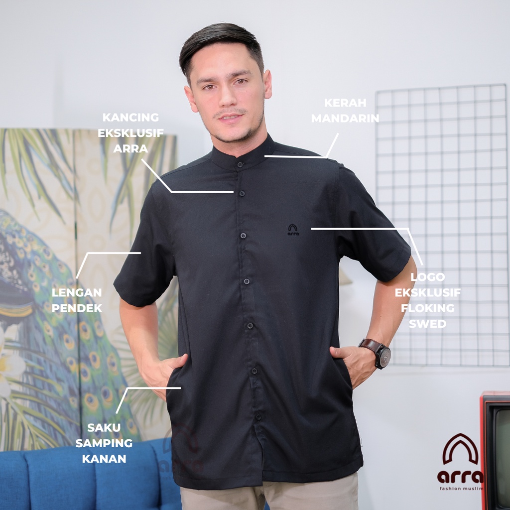 Detail Baju Koko Kurta Pria Dewasa Lengan Pendek Arra Daud