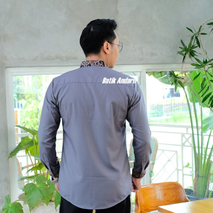 Detail Baju Koko Kurta Qurta Pria Dewasa Slimfit Lengan Panjang Modern Warna Abu Abu