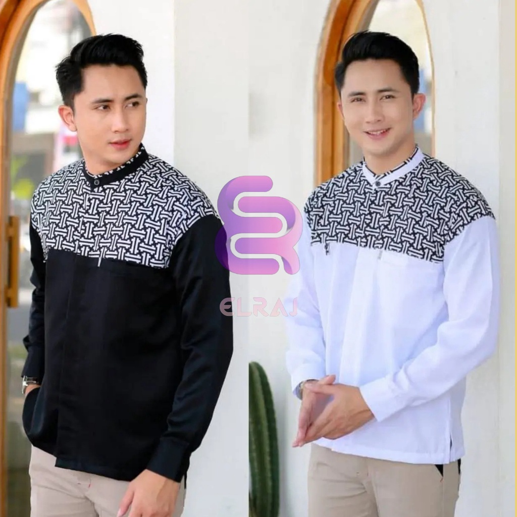Baju Koko Original Elrumi Motif Yisunsin Warna Putih Lengan Panjang Kombinasi Bordir Elrumi