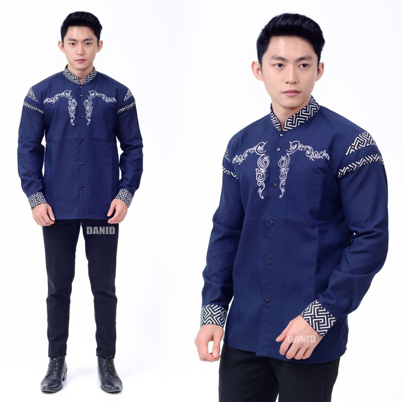Detail Baju Koko Pria Bordir Warna Biru Navy Ukuran M L XL