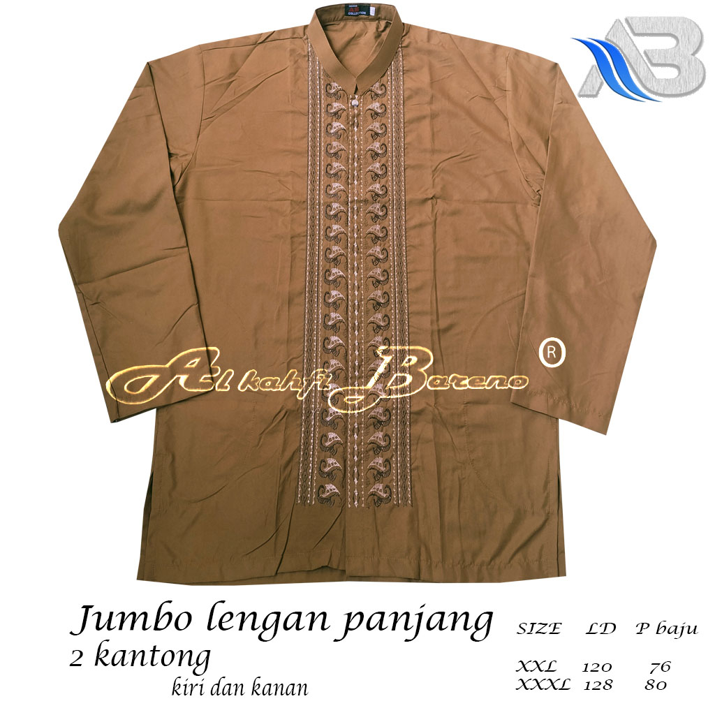 Detail Baju Koko Pria Dewasa BIG SIZE Lengan Panjang Putih JUMBO Koko Al qadr/AB Al kahfi Bareno Katun Muslim COD