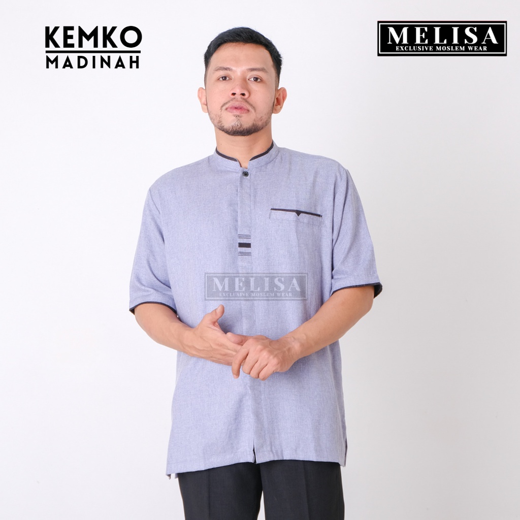 Detail Baju Koko Pria Kemko Lengan Pendek Bahan Katun Madinah Premium Size M L XL Abu Lilac