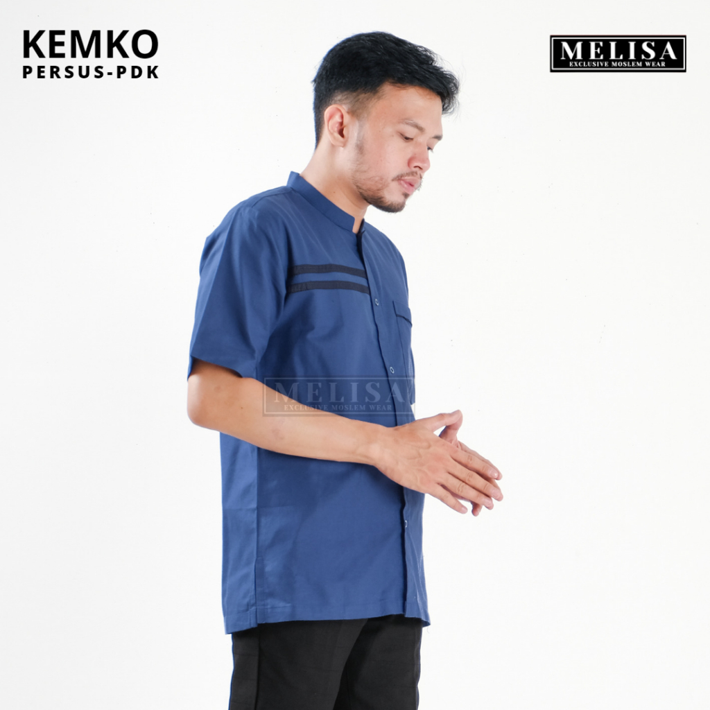 Baju Koko Pria Kemko Lengan Pendek Bahan Katun Persus Motip Simpel Dan Elegan Size M L XL Baju Muslim Polos Promo Baju Muslim Terbaru-Warna Denim