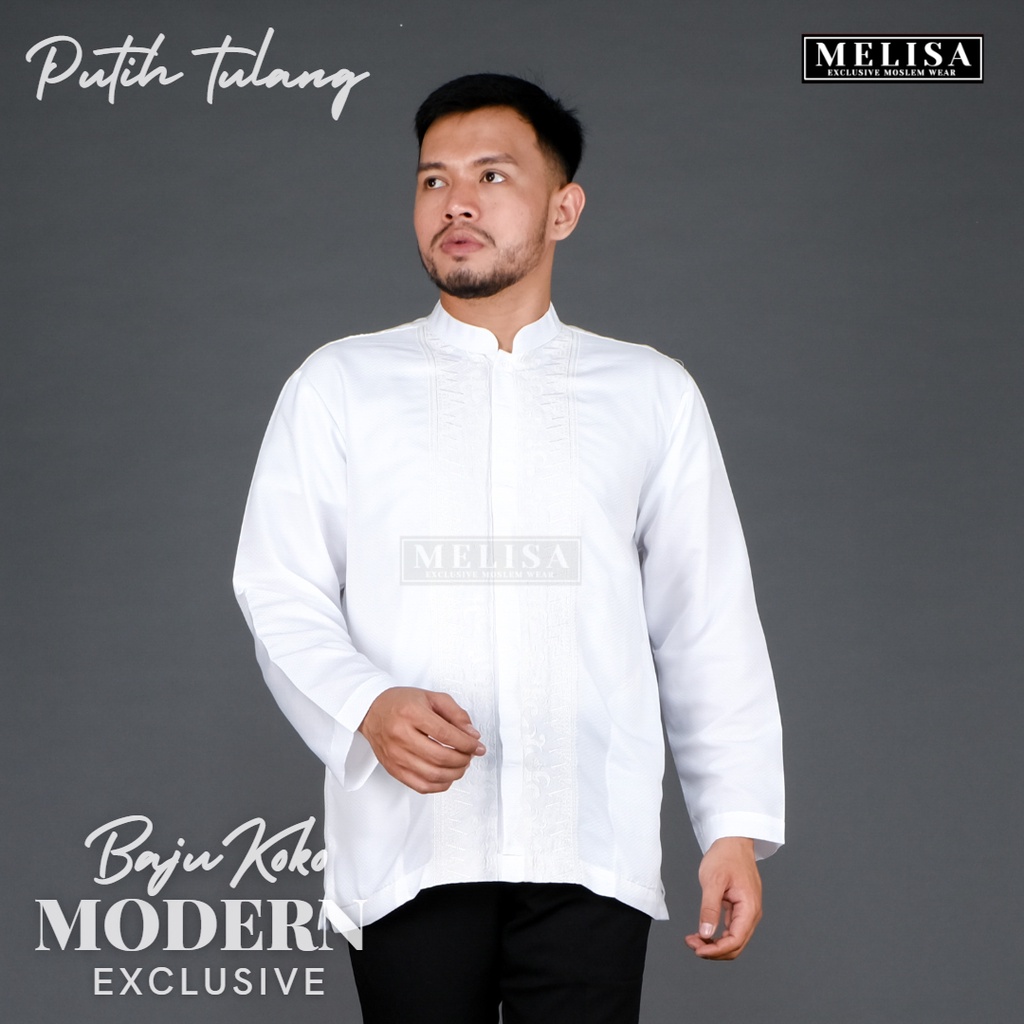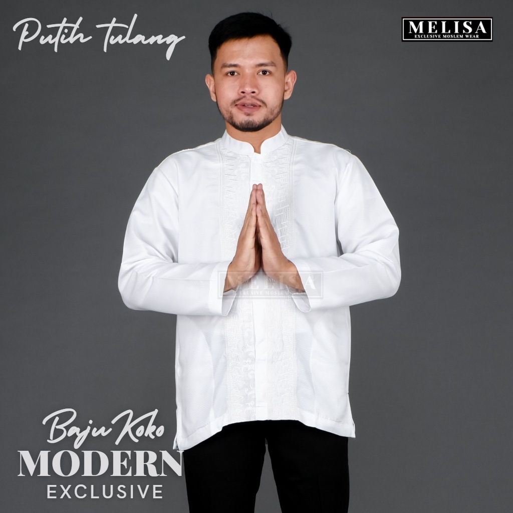 Fashion Muslim > Pakaian Muslim Pria > Atasan > baju koko pria lengan panjang bahan poli katun warna putih tulang motip bordir senada Size M L XL Fashion Muslim Pria Terbaru