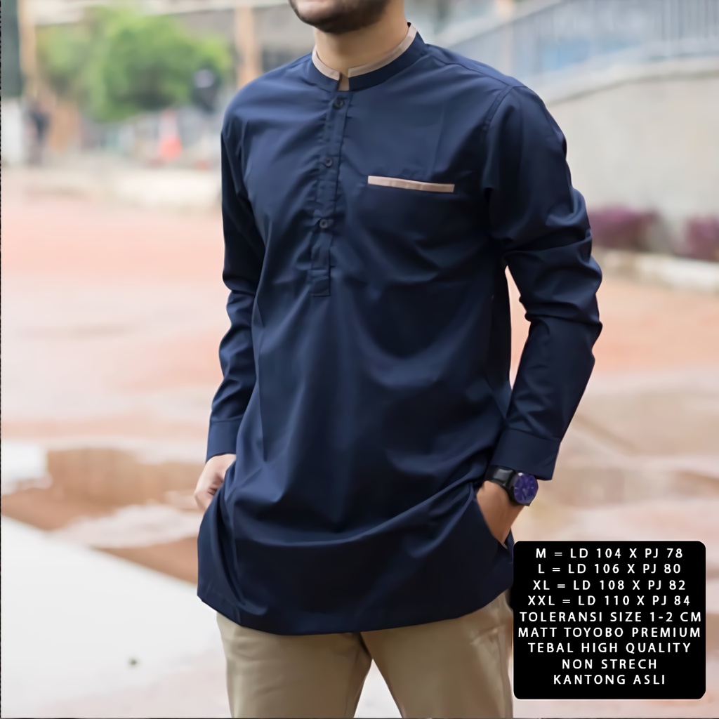 Baju Koko Pria Lengan Panjang Motif Polos Warna Navy Toyobo - Baju Koko Pria Dewasa - Busana Muslim Pria - Baju Lebaran Pria - Koko Pria Dewasa - Muslim Pria - Baju Kokoh - Baju Koko Batik - Koko Batik Pria - Alqorni - Baju Ramadhan - Seragam Hadroh