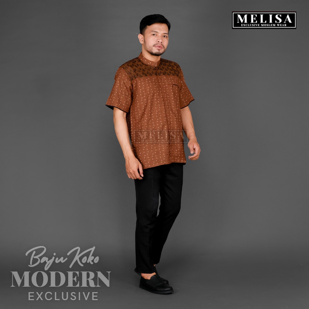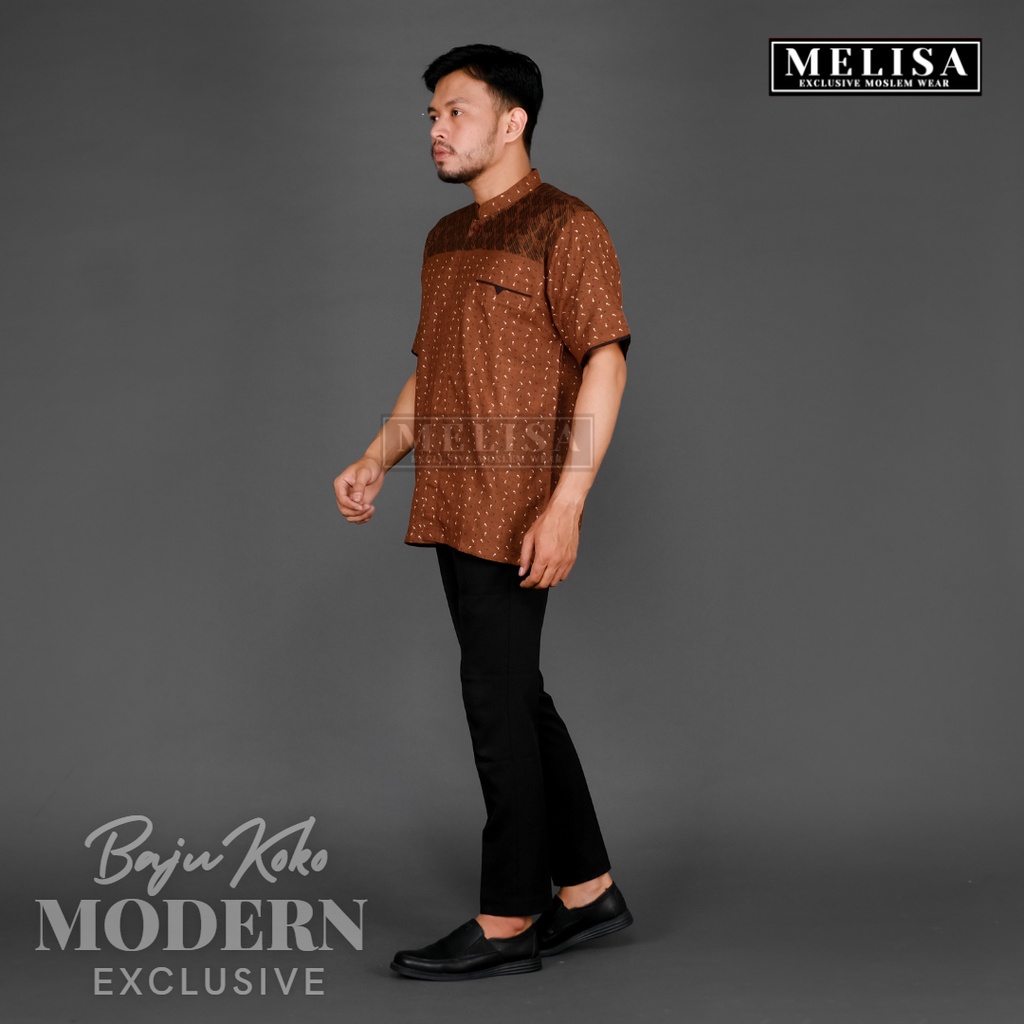 Fashion Muslim > Pakaian Muslim Pria > Atasan > Baju Koko Pria Lengan Pendek Baju Koko Fashion Muslim Pria Dewasa Terbaru Bahan Katun Songket Warna Terakota
