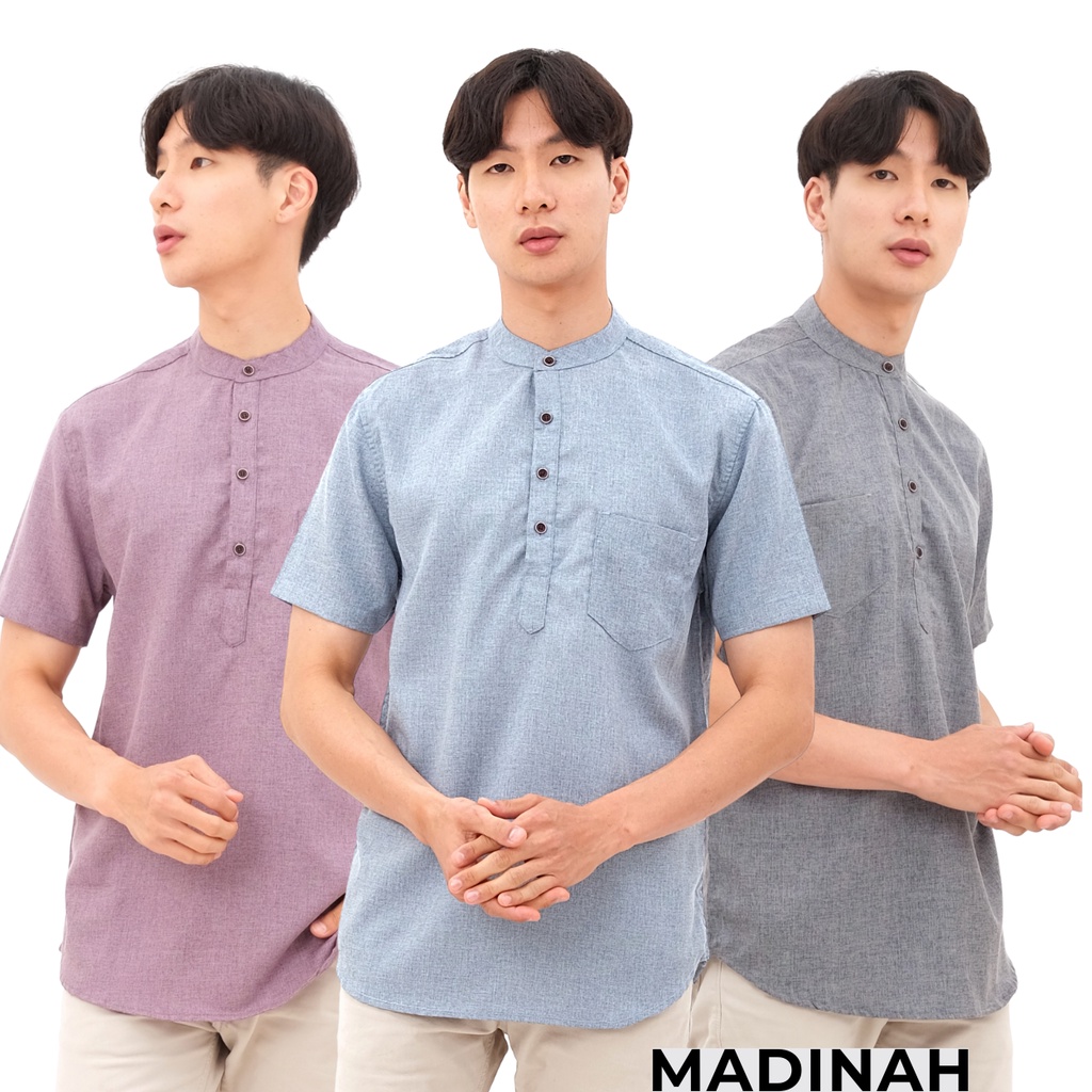 Detail Baju Koko Pria Lengan Pendek Polos Baju Muslim Kemko Dewasa Katun Madinah