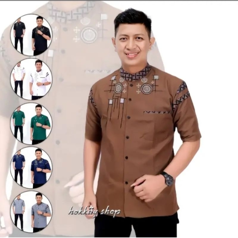 Baju Koko Pria Motif Bordir Roda Stylish Pakaian Muslim Koko Dewasa