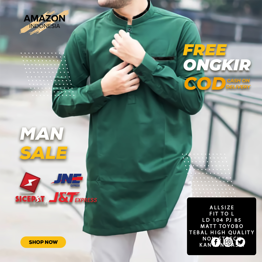 Baju Koko Kurta Dewasa Lengan Panjang Material Catton Adem Serap Keringat