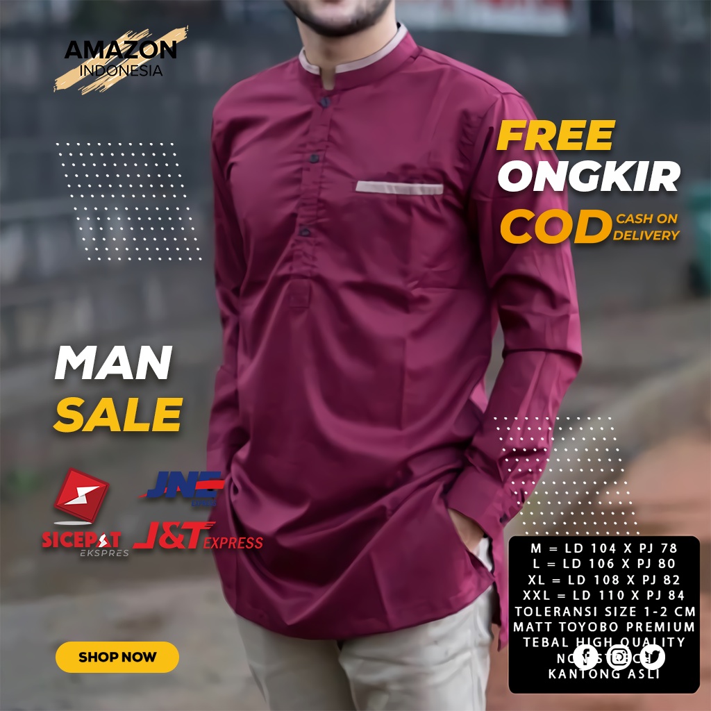 BAJU KOKO PRIA MUSLIM WARNA MAROON BAHAN TOYOBO PREMIUM HIGH QUALITY TEBAL DINGIN LENGAN PANJANG ORI