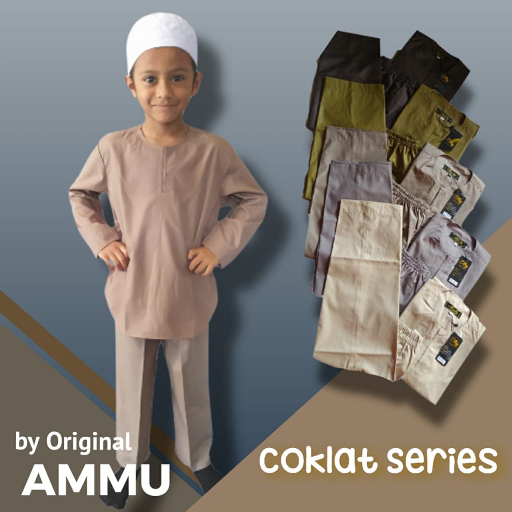 Fashion Muslim > Pakaian Muslim Anak > Pakaian Muslim Anak Laki-Laki > Baju Koko Setelan Anak Original Cokelat by ammu Coklat Series Anak, Abu Ali Bahan Katun, Abu Aly collection