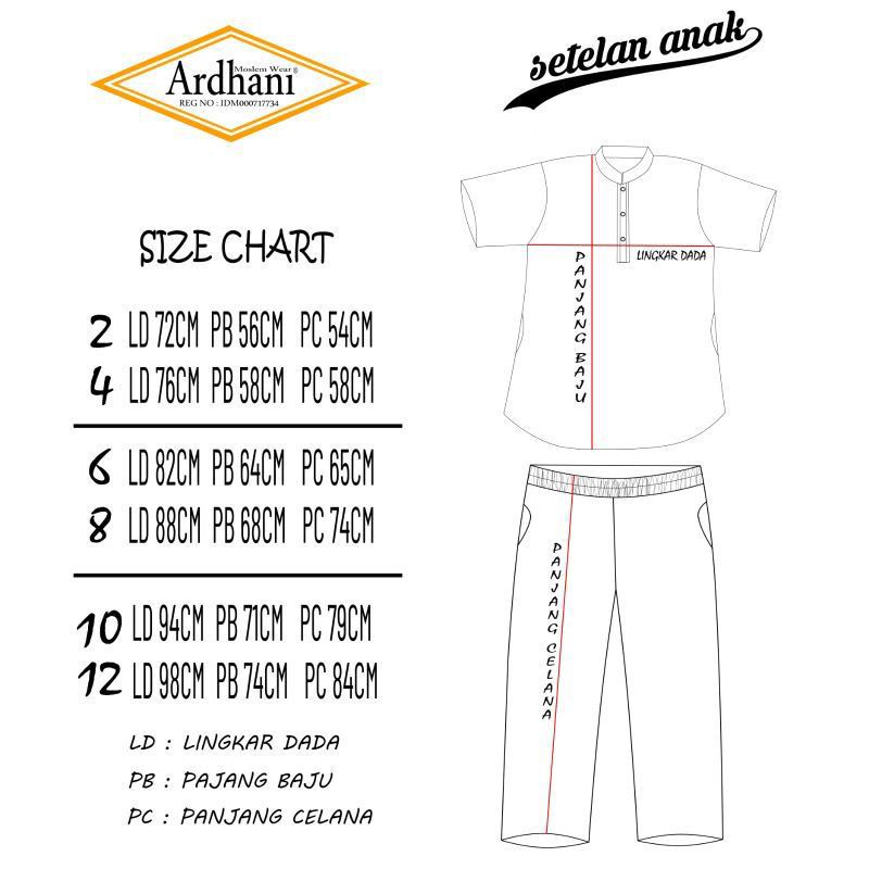 *koreksi +- 1cm LD = Lingkar Dada PB = Panjang Baju PC = Panjang Celana